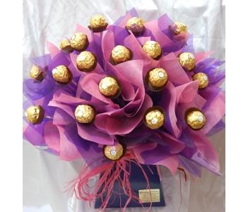 This Ferrero Rocher Bouquet is pure luxury. Available in three size the Ferrero Rocher are arranged into a bouquet that would be a perfect Birthday gift orAnniversary present. Our Ferrero Rocher bouquets are a very popular Get Well gift idea. Designed and created here at Petals Of Madinah The Flower and  Gift Store, our Ferrero Rocher bouquet can include your own personal message.