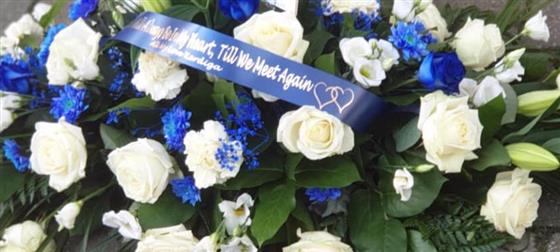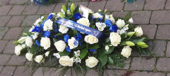 Blue and White, rose and mix - 3ft tapered casket spray