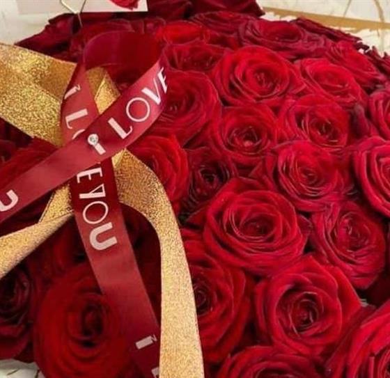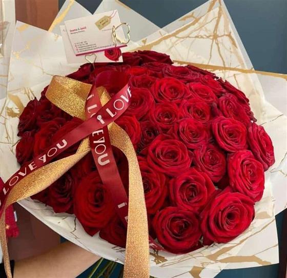 Luxury 50 Red Roses with Marble Ivory Hand Tie