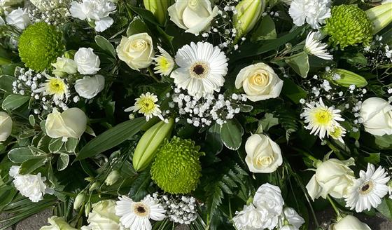 Full white & Cream casket spray, 4.5ft