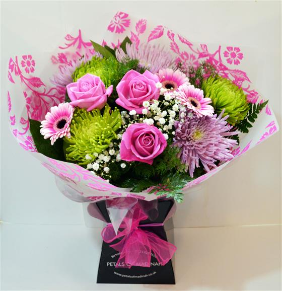 Please note that due to the seasonal availability of flowers it may be necessary to vary individual stems from those shown. Our skilled florists may substitute flowers for one similar in style, quality and value. Where our designs include a sundry item like a vase or basket it may not always be possible to include the exact item as displayed. If such an occasion arises we will make every effort to replace the item with a suitable alternative.